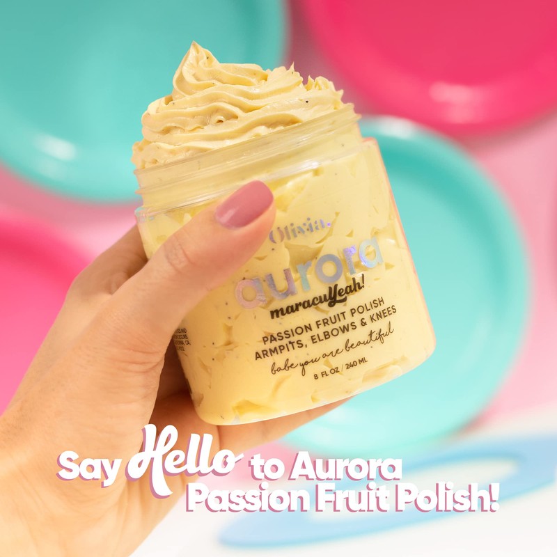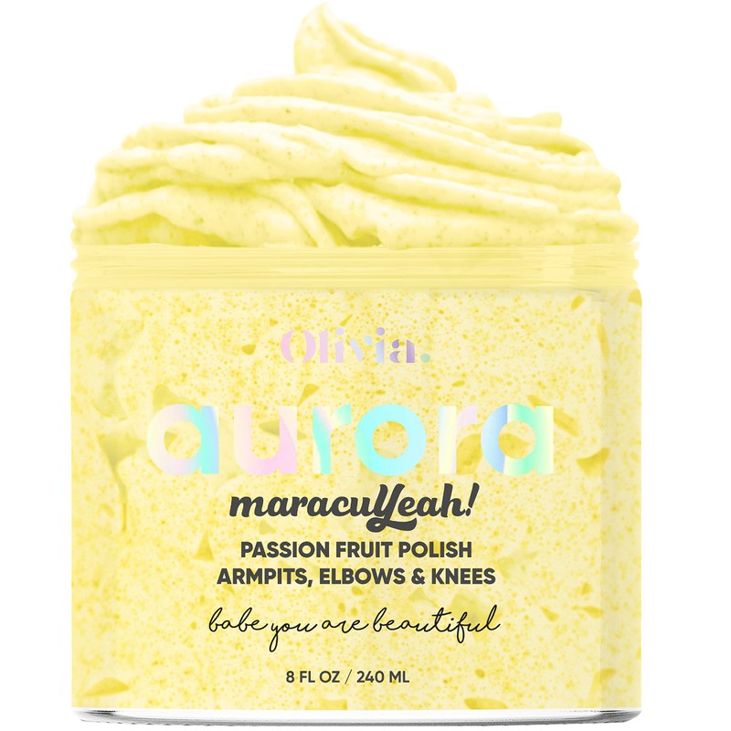 OLIVIA Aurora Armpits, Elbows & Knees Brightening Deep Cleansing Exfoliator Scrub - Vegan Passion Fruit Helps with Dry Skin, Dark Spots, & Pigmentation. Premium Natural Ingredients & Cruelty Free. 8Oz