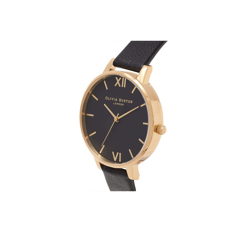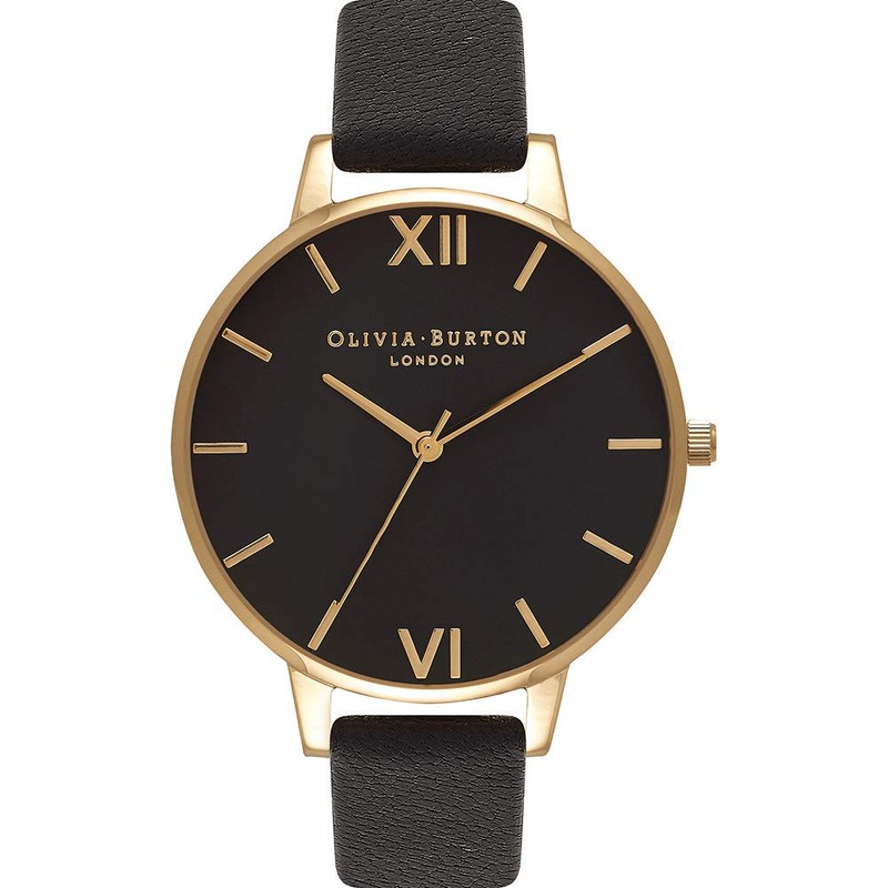 Olivia Burton Analog Quarzuhr für Damen mit Schwarzes Lederarmband - OB15BD55