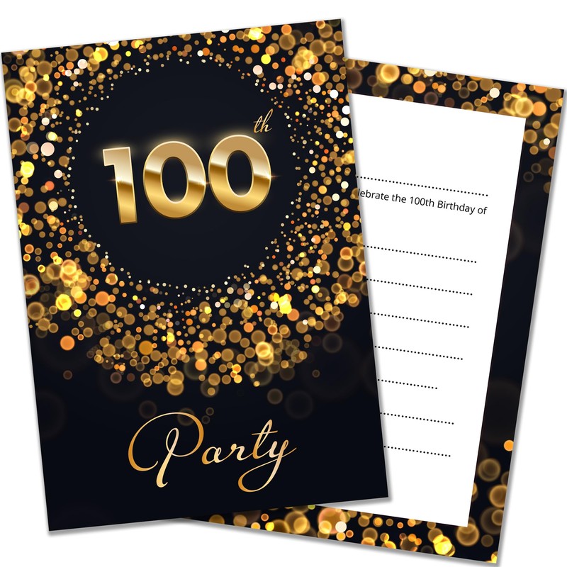 - 100TH BIRTHDAY INVITES ⭐ Pack of 20 high quality Party Invitations ⭐ A6 Size (105mm x 148mm) ⭐ Professionally printed both sides ⭐ Supplied with white envelopes