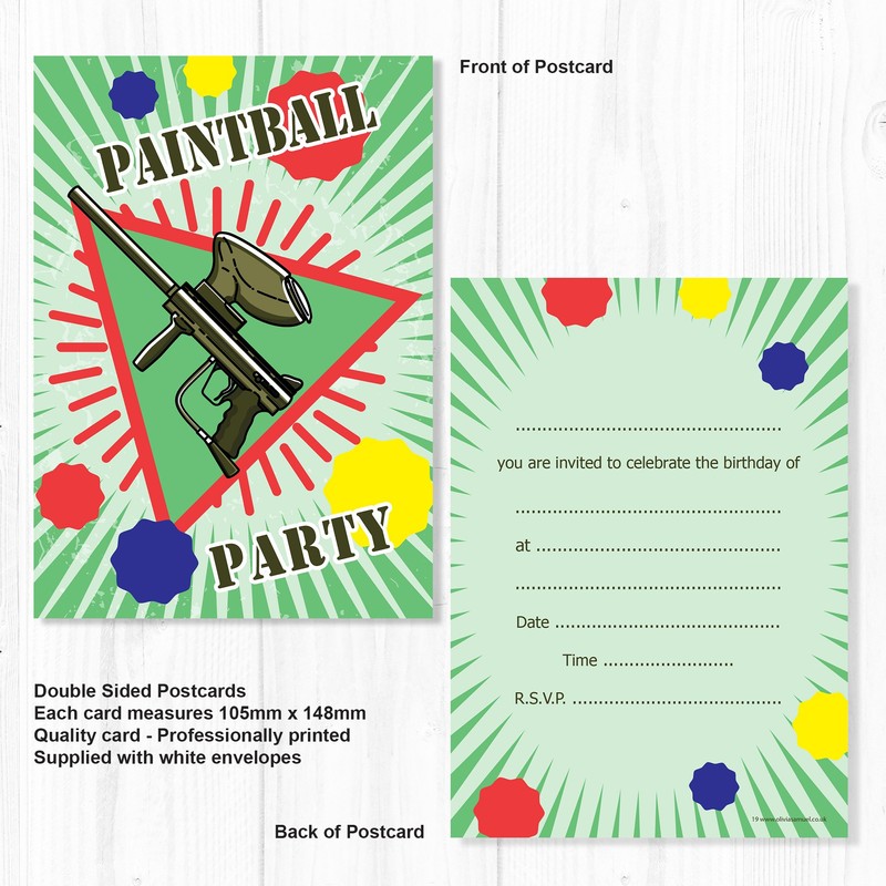 Olivia Samuel 20 x Paintball Party Invitations - Birthday Invites from A6 Postcard Size with envelopes