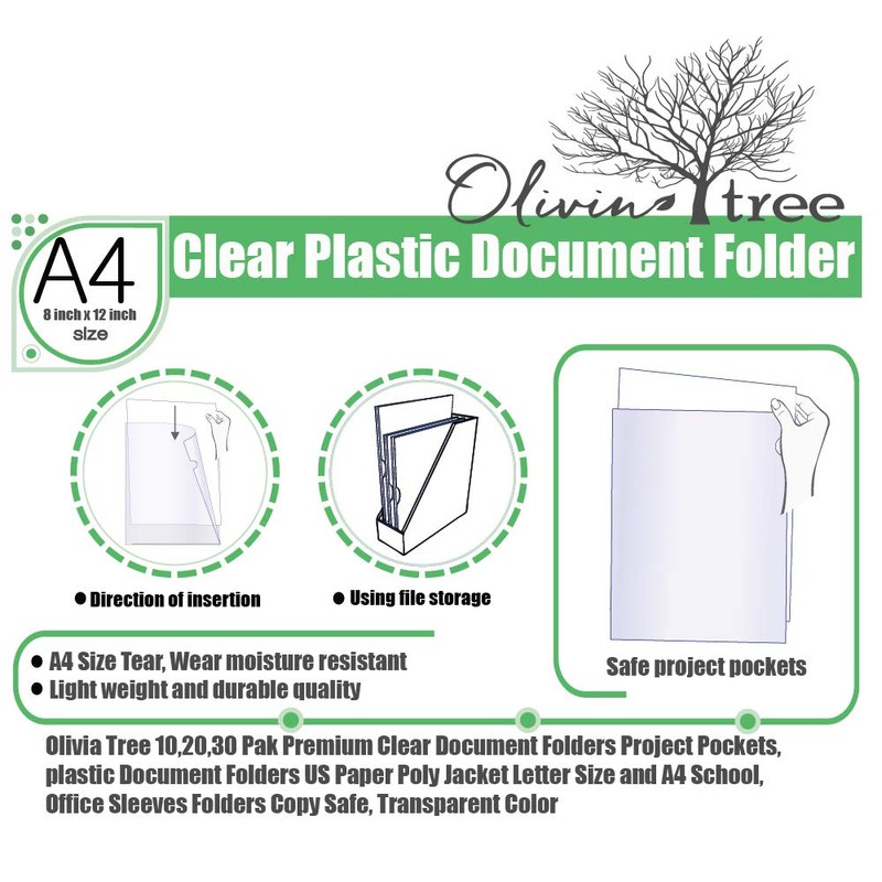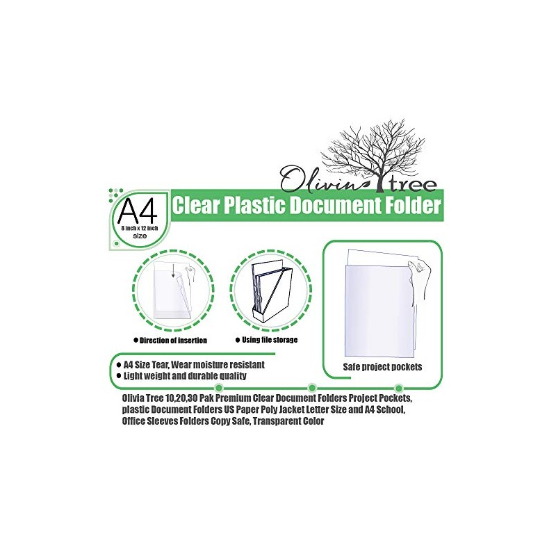 Olivia tree L Folders 10 Pack Premium Clear Document Folders Project Pockets, Plastic Document Folders US Paper Poly Jacket Letter Size and A4 School Office Sleeves Folders Copy Safe