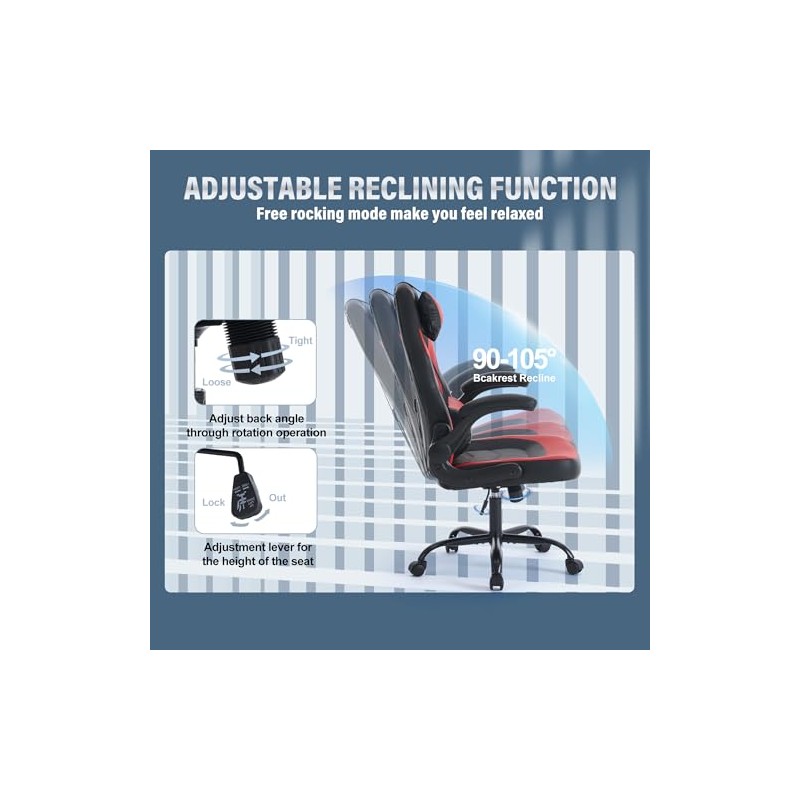 - Multi-functional adjustable - This product is equipped with detachable headrest and lumbar support. The lumbar support can be adjusted by sliding to position that suits your sitting posture, making it ideal for entertainment and work time. The back angle can be adjusted from 90° for concentration to 105° for relaxation. The sturdy three-level air pressure lifting device and upgraded mechanism ensure stable and powerful support at any angle, providing reliable support in any position.