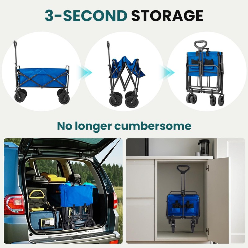 - 【All-Terrain Performance for Any Adventure】Take this beach wagon with big wheels for sand anywhere! The sturdy wheels glide effortlessly over sand, pavement,and grass, making it perfect for beach trips,park outings,or sports wagon use. Plus,the folding wagon design ensures easy storage in your car trunk or closet.