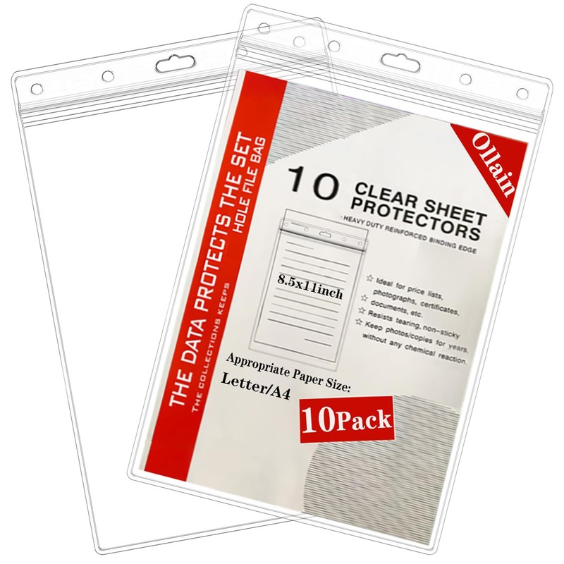 Ollain 10 PCS Page Protectors Waterproof Resealable Zip Paper Page Sheet Protectors Clear Hard Plastic Sleeves, 8.5" x 11" | Premium Quality for Ultimate Document Protection
