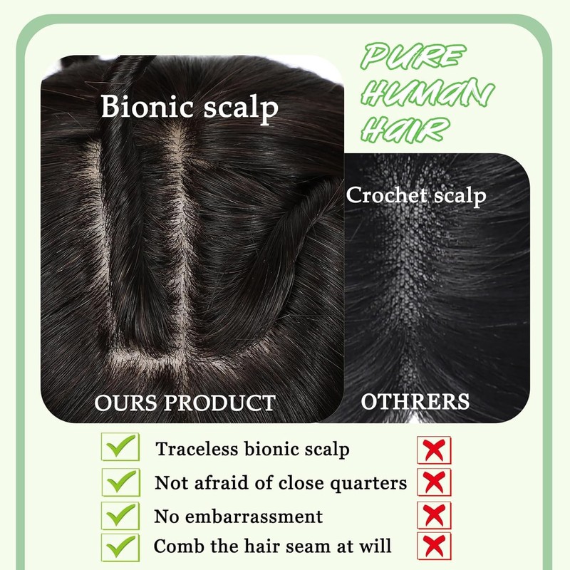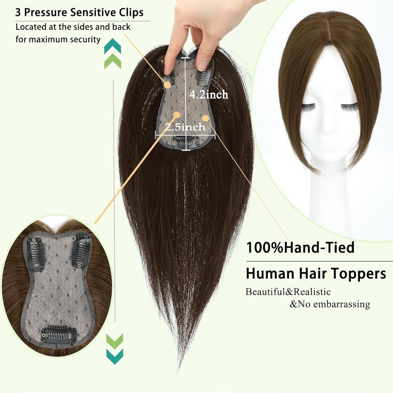 OLLAVO Hair Toppers for Women Real Human Hair, 360°3D Bangs Clip Human Toppers for Women with Thinning hair Realistic Scalp Line (Mocha Brown, 3D Side Bangs)