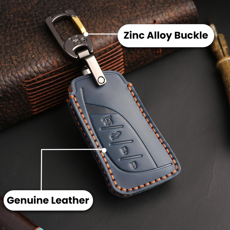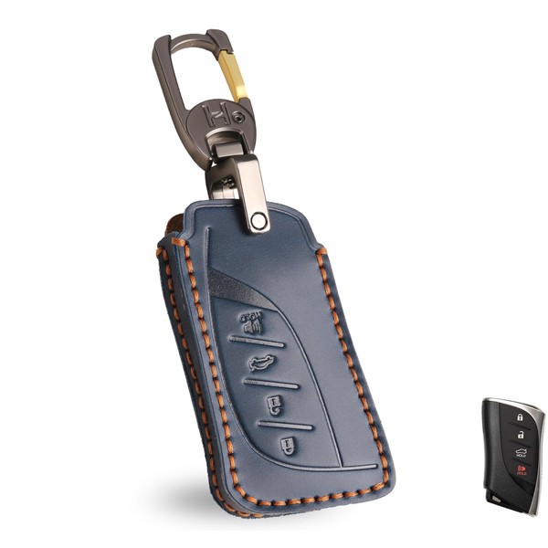 OLLEN Genuine Leather Key Fob Cover, Fit for Lexus ES LS LC RX NX TX GX UX Series 2018-2025~, Leather Smart Remote Key Protector, 4 Buttons, Blue