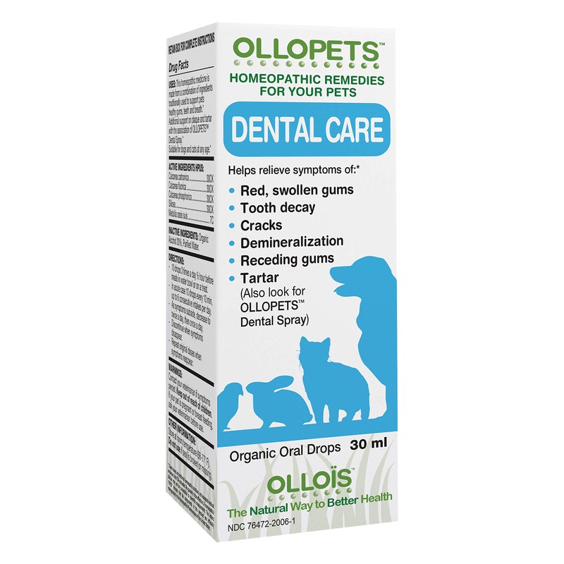 - Dental Care: Organic oral drops formulated with 5 different homeopathic ingredients to address dental issues in pets; May help relieve red, swollen gums, tooth decay, cracks, demineralization, receding gums, tartar