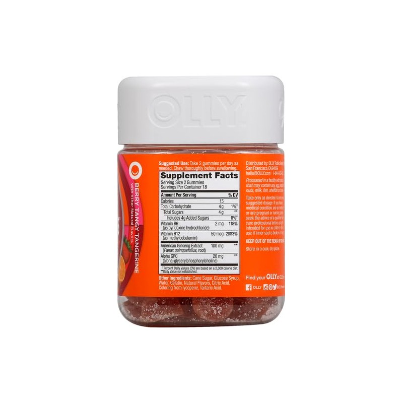 OLLY OLLY Laser Focus Gummy, Ginseng, Alpha GPC, B Vitamins, Berry Tangerine Flavor - 36 Count