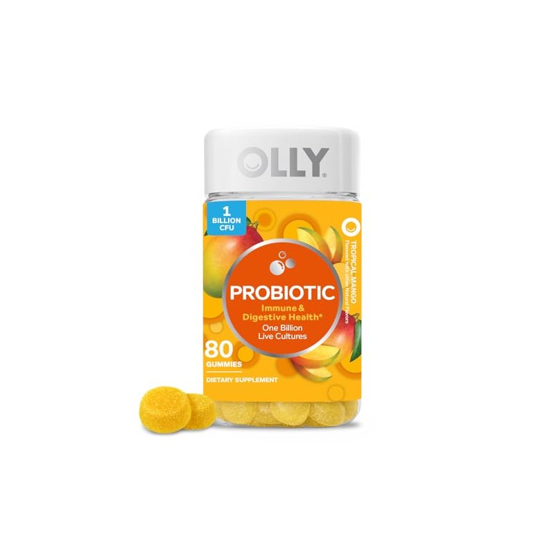 OLLY OLLY Probiotic Gummy, 1 Billion CFUs, Immune and Digestive Support, Chewable Probiotic Supplement, Mango, 80 Count