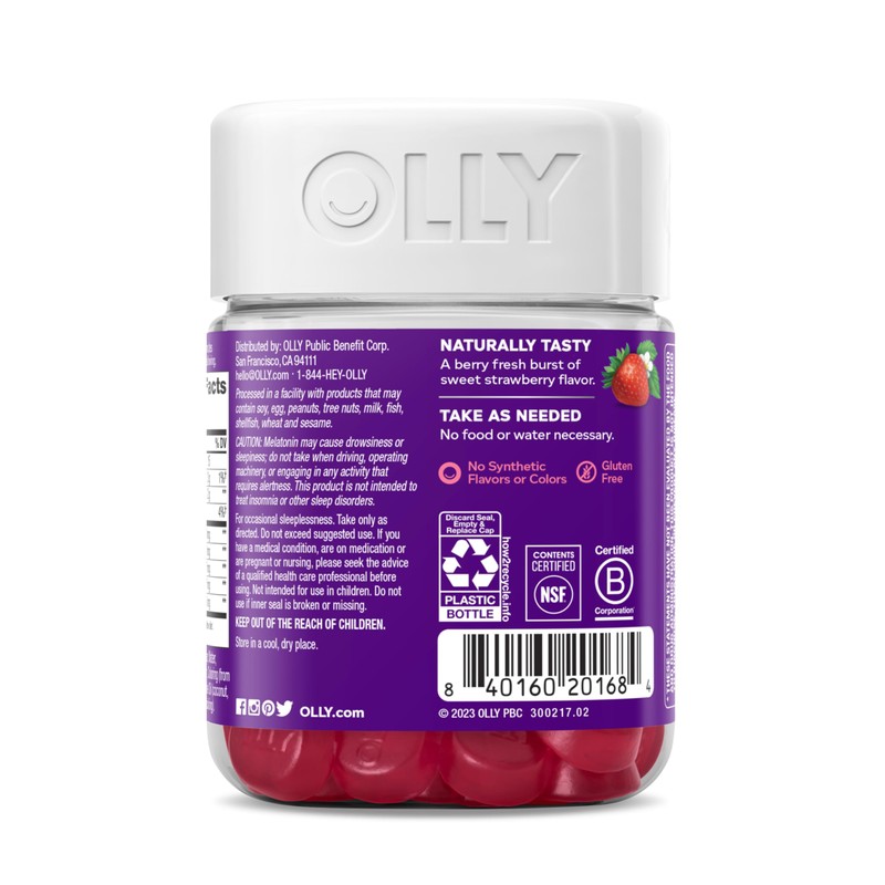 - OLLY STRAWBERRY SLEEP GUMMIES: The melatonin in our gummies works with your body to help you fall asleep and stay asleep* with L-Theanine and and traditional Botanical Extracts.