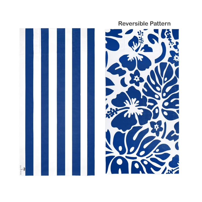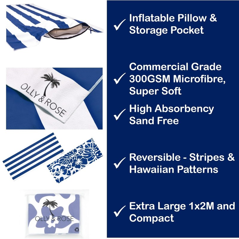 • LUXURIOUS LOOK AND FEEL IN ROYAL BLUE: Printed ultra soft microfibre with a classic stripe design, the Olly & Rose Beach Towel will add a touch of elegance at the beach.