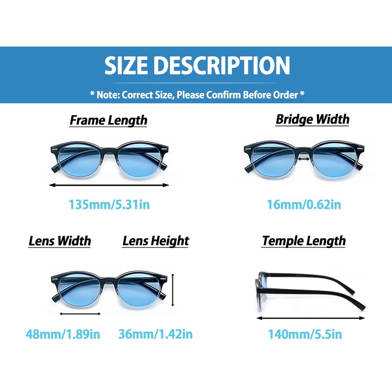 - 💎【Product dimensions】total frame width:135mm/5.31 inches; temple length:138mm/5.43 inches; lenses width:48mm/1.90 inches; lenses height:36mm/1.42 inches; nose bridge width:16mm/0.63 inches,22g/0.066lb per pair; please check the dimensions before purchase; these reading glasses with small frames are for women/female who has a small head or narrow/petite face
