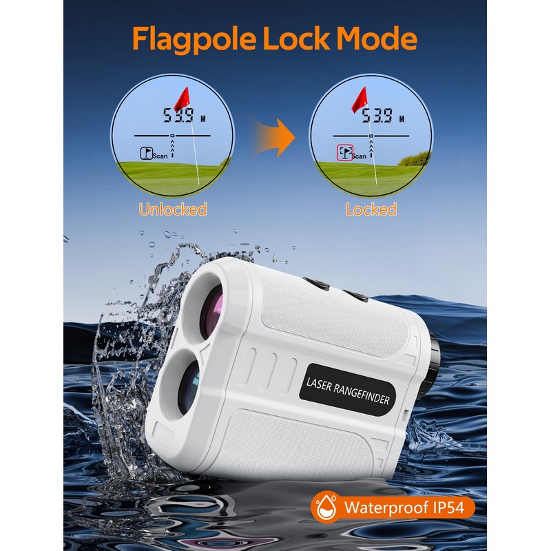 - 【Flagpole Locking】 The rangefinder has a flag pole locking function, after the flagpole is locked, 0.5s quick measurement, the interface displays the locking flagpole, ensuring that you can quickly and easily capture the distance.