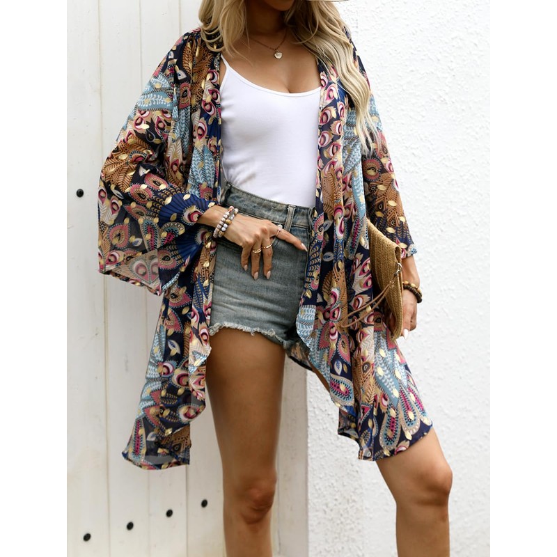 • Style: Cute Bohemia floral print, Open Front, bat sleeve, loose fit, boho style, Shawl sheer chiffon kimono, match for bikini, swimwear, beachwear or any summer dress and shorts.