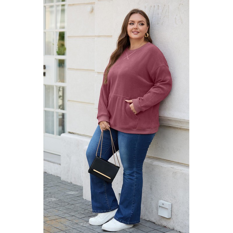 - Functional Kangaroo Pocket: This plus size crewneck sweatshirt features a roomy kangaroo pocket to keep hands warm or store essentials. Pair it with leggings or jeans for a relaxed, effortless fall look—essential plus size fall clothes for the season