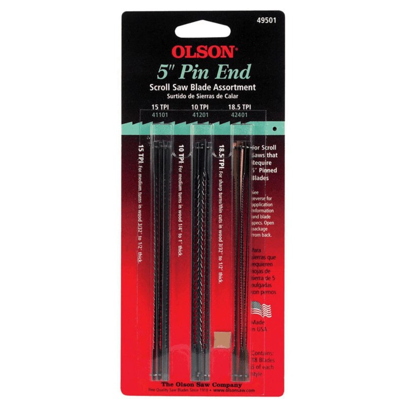 Olson Scroll Saw Blade Assortment Pin End Skip Tooth 5 10 Tpi 15 Tpi 18.5 Tpi Card