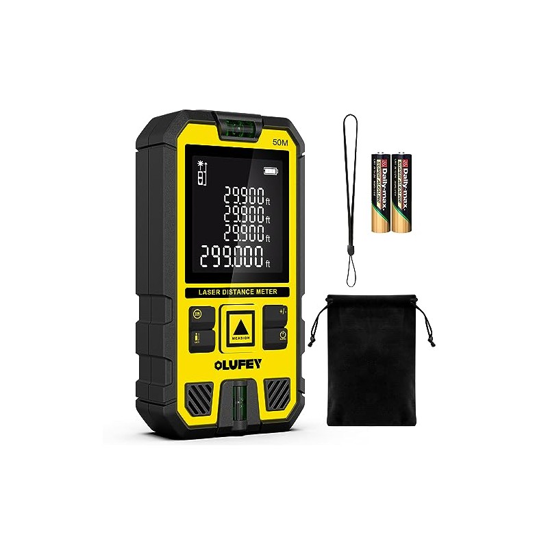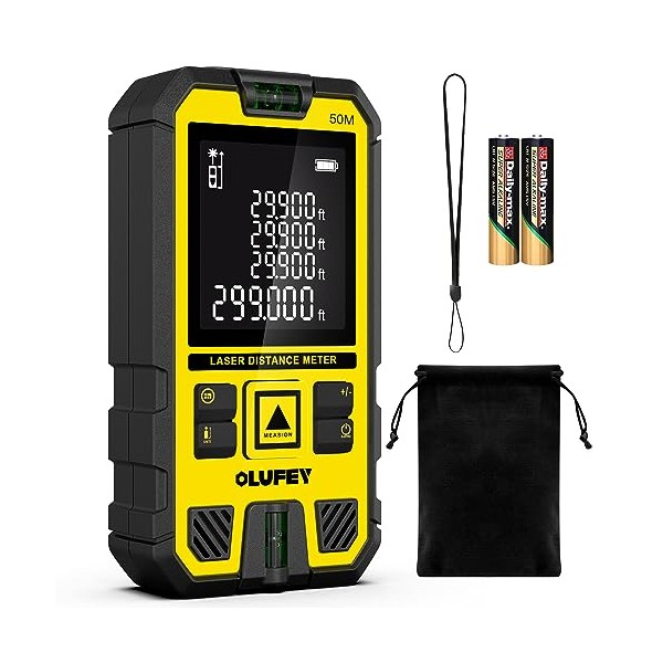 OLUFEY Laser Measure 50M,Laser Distance Meter Device IP54 Portable Digital Measure Tool Range Finder with Bubble Levels and LCD Backlit