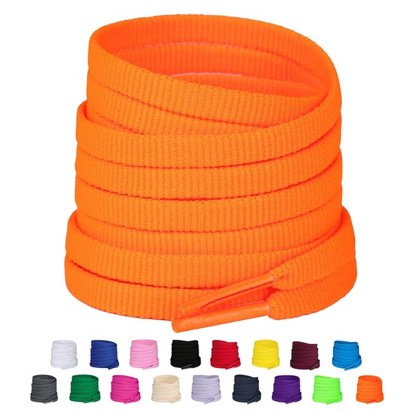 Olukssck 2 Pairs 6 mm Wide Flat Trainers Shoelaces, Premium Replacement Shoe Laces for Sports Shoes, Trainers and Casual Shoes, Neon Orange, 120 cm