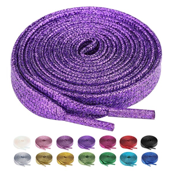 Olukssck 2 Pairs Flat Glitter Shiny Metallic Shoe Laces for Sneakers, 2/5" Wide Sequin Athletic Shoelaces Dark Purple 55 inch(140cm)