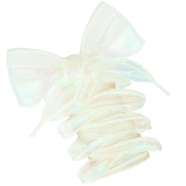 Olukssck 2 Pairs Transparent Snow Yarn Shoelaces 4 cm Flat Women's Chiffon Shoe Laces for Trainers & Trainers Lightweight & Breathable, Cream, 120 cm