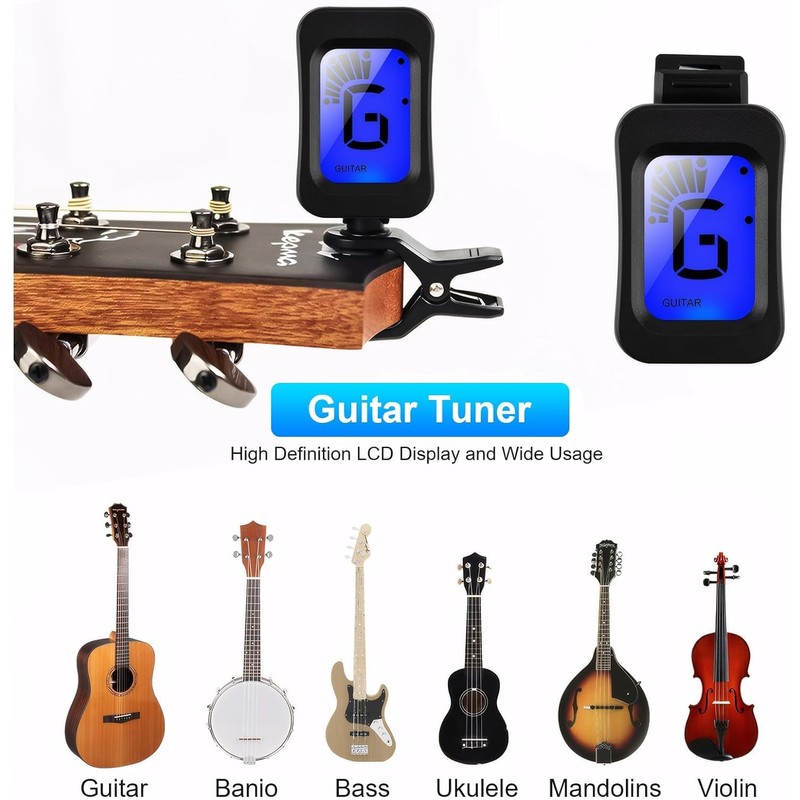 - 【Quality Control】 Our guitar strings are made of steel with unique rustproof coating, definitely more durable, and there are various types strings for you to choose, which sufficient to meet players needs. Guitar tuner has a clear LCD display. Guitar capo is made from premium-grade zinc alloy that can bring you nice guitar playing experience. In addition to acoustic guitars, the capo also suitable for electric guitar and ukulele.