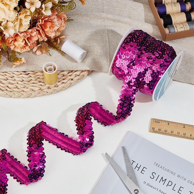 - Ideal for sewing: the sequin border is ideal for sewing such as decorating dresses, trousers, tablecloths, curtains, blankets, scarves, hats, headbands, bracelets and shoes and so on.