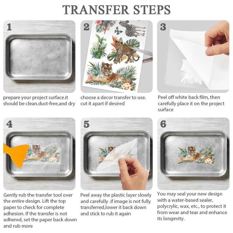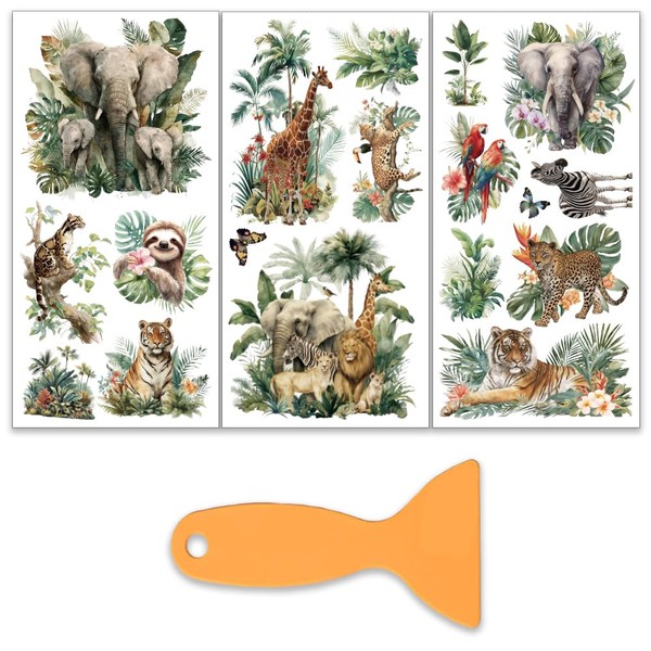 OLYCRAFT 3pcs/Set Wildlife Animal Rub on Transfers for Furniture and Craft 15x30cm Tropical Plants Furniture Decal Transfer Sticker Rub on Decal with 1pc Scraper for Scrapbook Window Home Decoration
