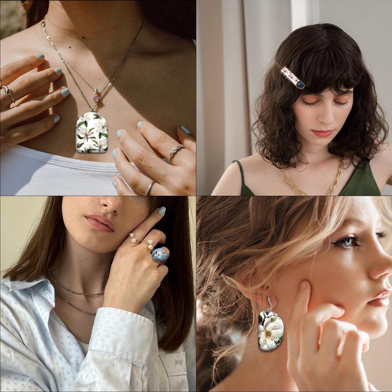 OLYCRAFT Magnolia Pattern Clay Transfer Paper 4 Design 24 Pcs Transfer Paper for Polymer Plant Polymer Clay Transfer Sheets Flower Theme Small Transfer Paper for Clay Earrings Jewelry Making