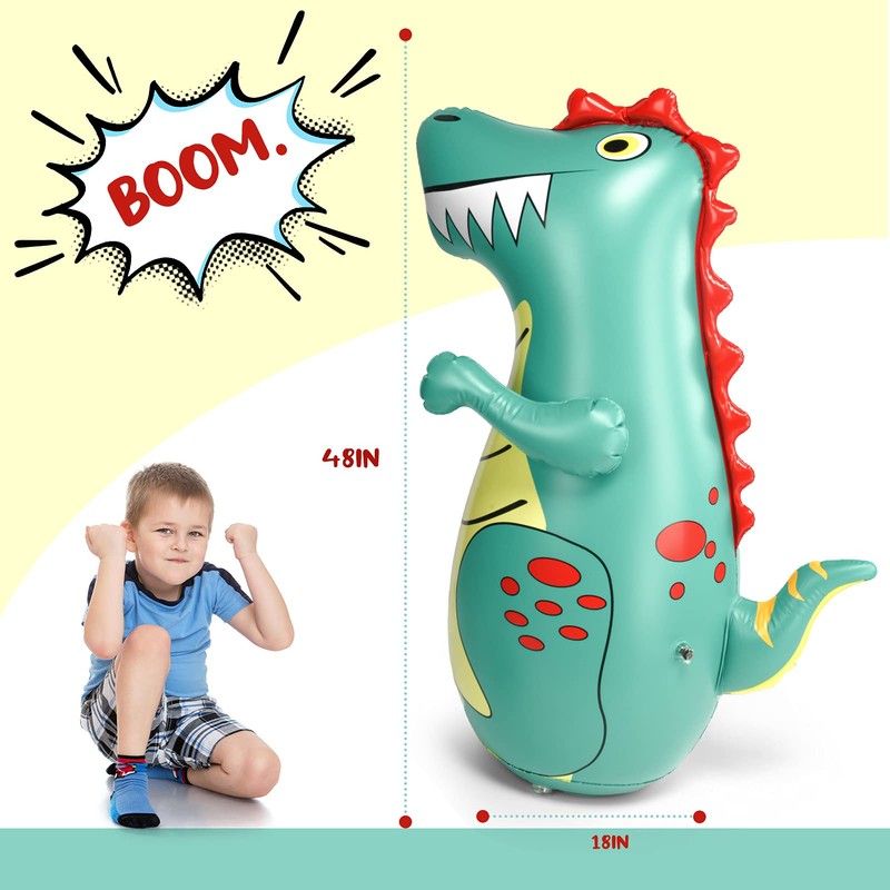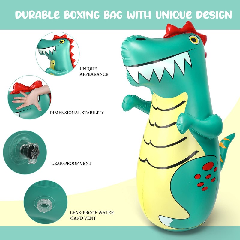 olyee Boxing Dinosaur Punching Bag for Kids & Adults, Free Standing Bounce Back Inflatable Roly-poly Toy for Relaxing Punch Indoors
