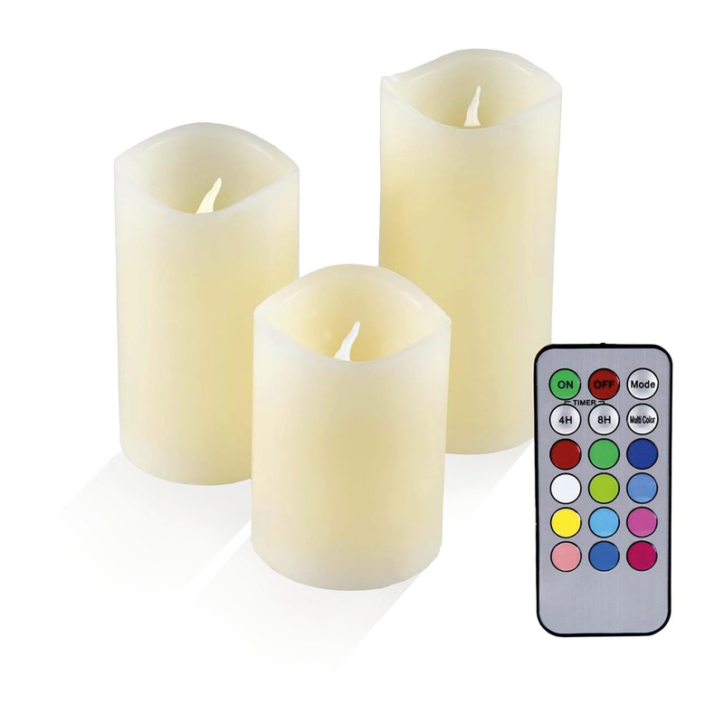 Olympia IOIO - Set of 3 LED real wax candles | LED candles with remote control & different colors | LED candles flickering flame | Real wax candles with timer function | LED candles real wax