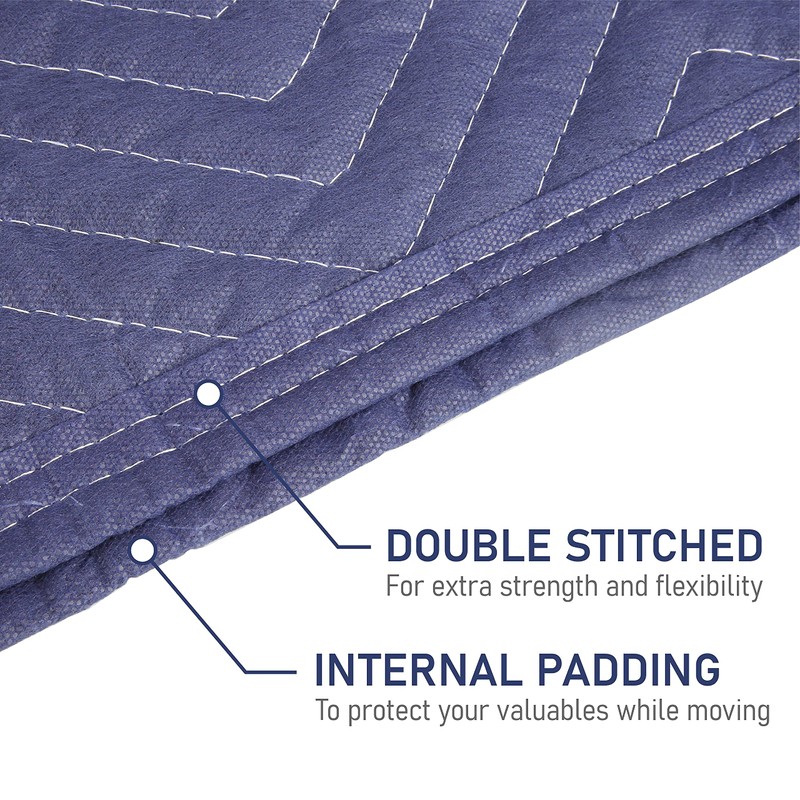 - NON-WOVEN MOVING BLANKET: constructed with thick padded virgin cotton batting with polyester binding, reinforced stitching on durable materials resists ripping and wearing, it offer superior protection the items from bumps and scratches when moving