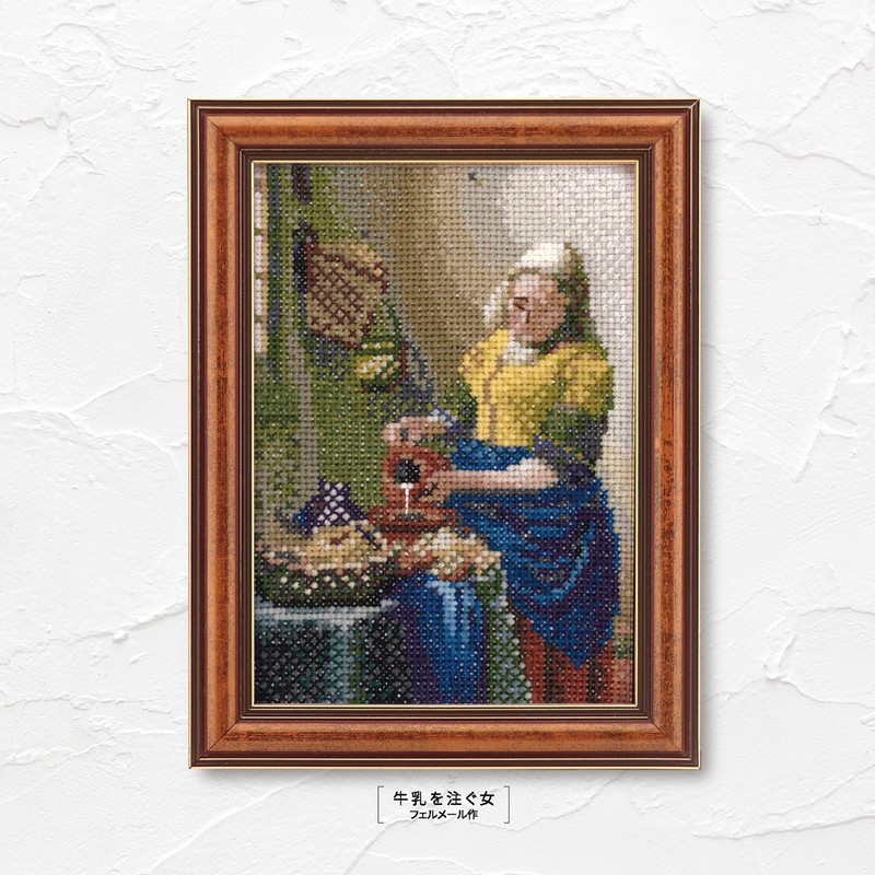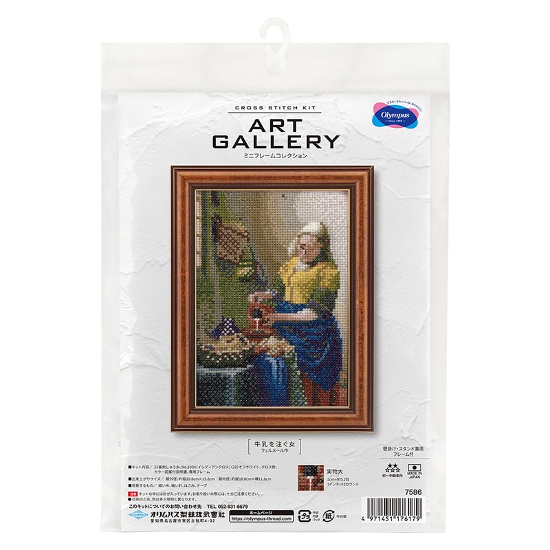Olympus Art GALLERY Mini Frame Collection, Milk Pouring Woman by Vermeer, 7586 Cross Stitch Kit, Includes Frame for Wall Hanging and Stand