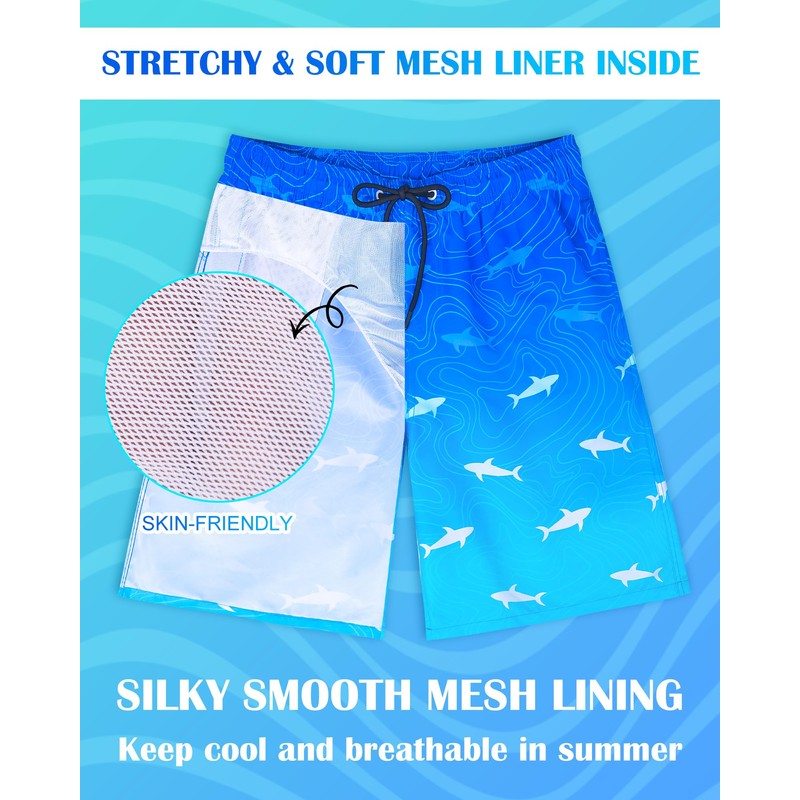 - Soft Mesh Lining: Men's 2-in-1 bathing suits beach shorts have mesh lining design, drying speed three times faster than compressed lining, made of scratch resistant fabric, UV resistant, helps avoid irritation