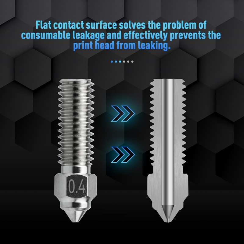 - High Thermal Conductivity High Flow for High Speed Printing: The thermal conductivity of copper alloy is as high as 330W/m·k, ensuring that the nozzle is heated more evenly. The volume is twice as large as ordinary nozzles, supporting high-speed printing speed of 600mm.