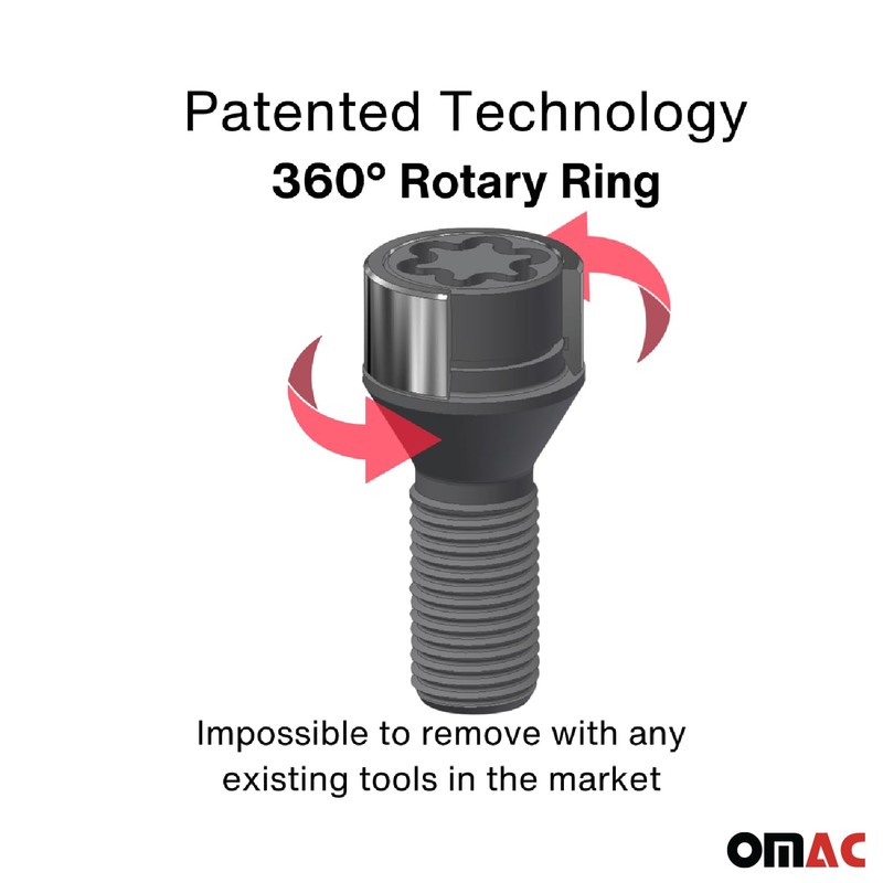 OMAC Wheel Lock Kit for Infiniti QX30 2016-2022 M14X1,5 Bolt Black 4Locks & 1Key