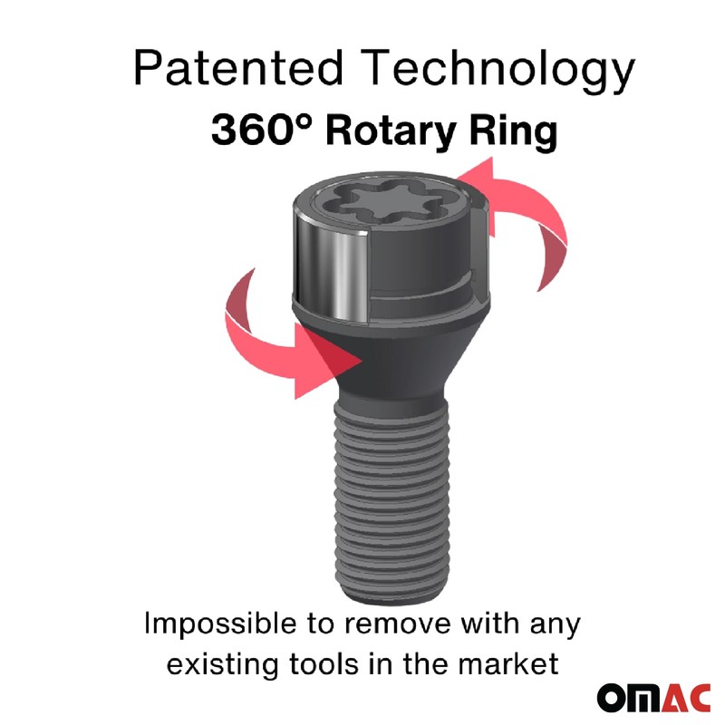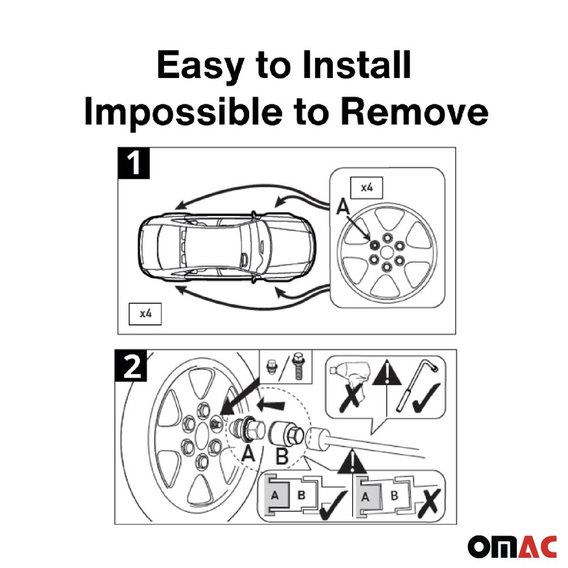 OMAC Wheel Lock Kit for Mini Cooper Clubman Countryman M14X1,25 Silver 4Locks & 1Key