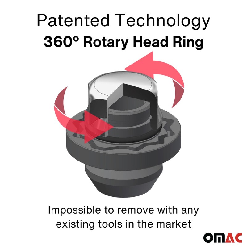 OMAC Wheel Lock Kit for Mitsubishi Lancer Outlander M12X1,5 Chromed Black 4Locks&1Key