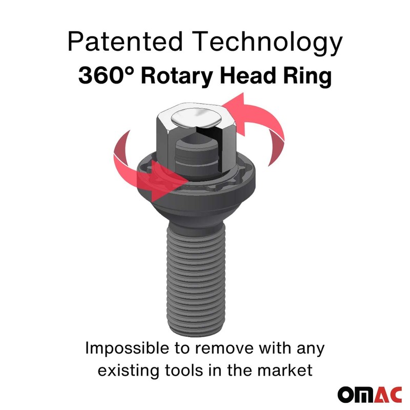 OMAC Wheel Lock Kit for Volvo XC60 M14X1.5 Bolt Chromed 4Locks & 1Key