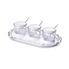 - ELEGANT SERVEWARE: Tired of bringing those clumsy containers of spices, coffee, sugar, or sauce to your table? We've got the perfect solution. With this condiment serving set, you can impress your guests with its all-in-one classy appearance. The cute spoons make it easy to use, while their lids make for easy storage, too.