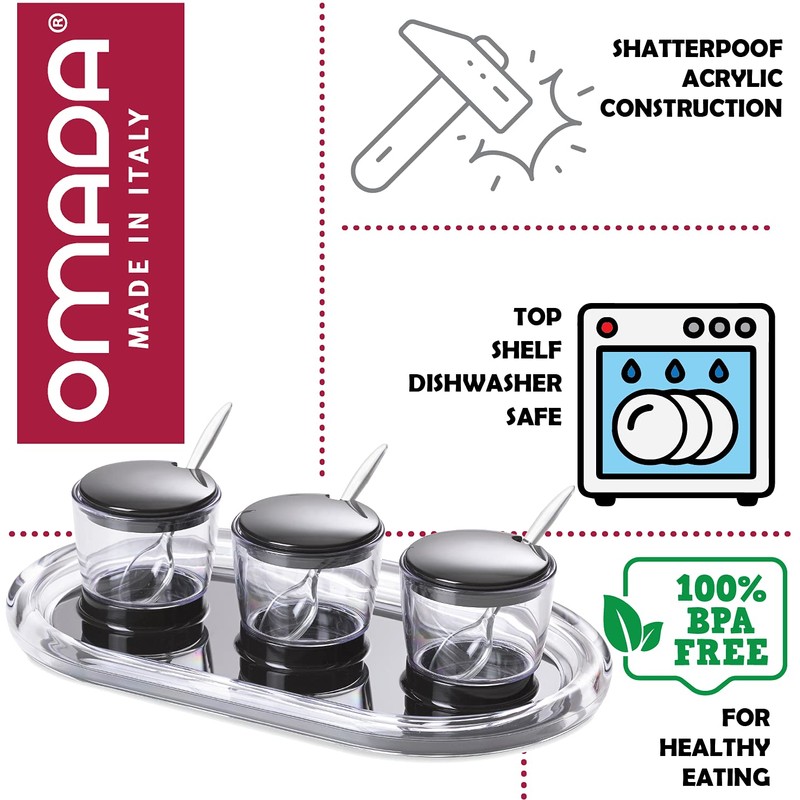 - MADE IN ITALY: This condiment tray was carefully crafted in Italy, so you can rest assured, knowing you are receiving quality when purchasing this tray with containers for spices and condiments.