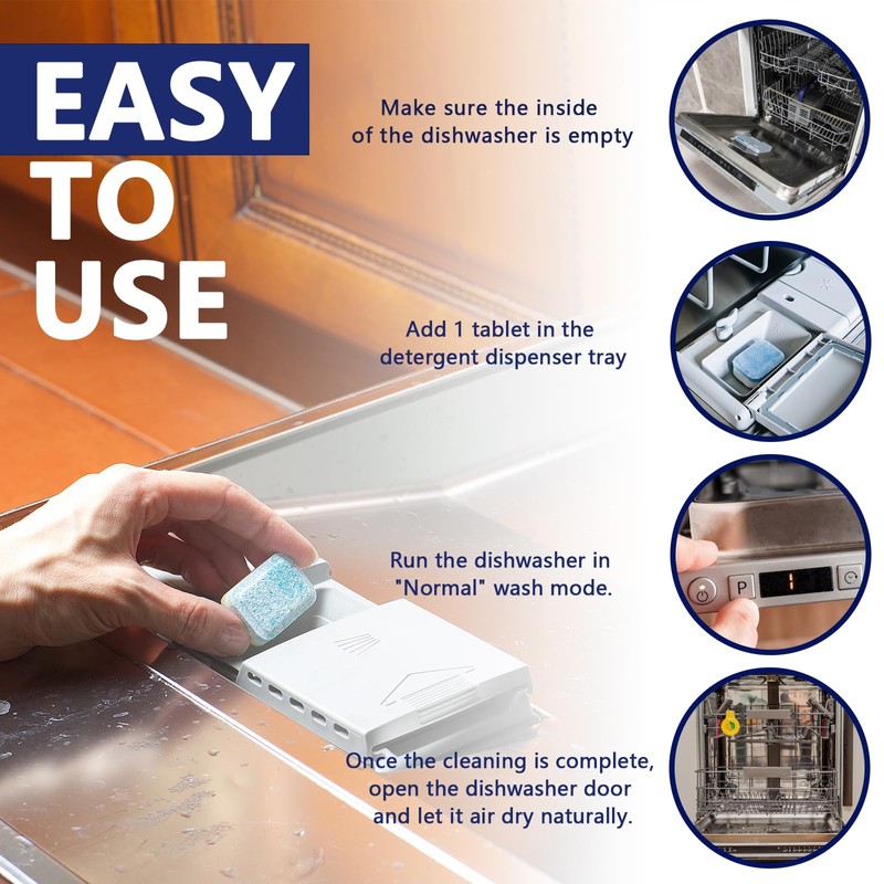 - Three-month Supply:Used twice a month,Use once every 15 days. Simply place the tablets in the detergent dispenser, run a hot cycle without any dishes, run auto clean or regular wash mode. Simply run a cycle to fix your dishwasher