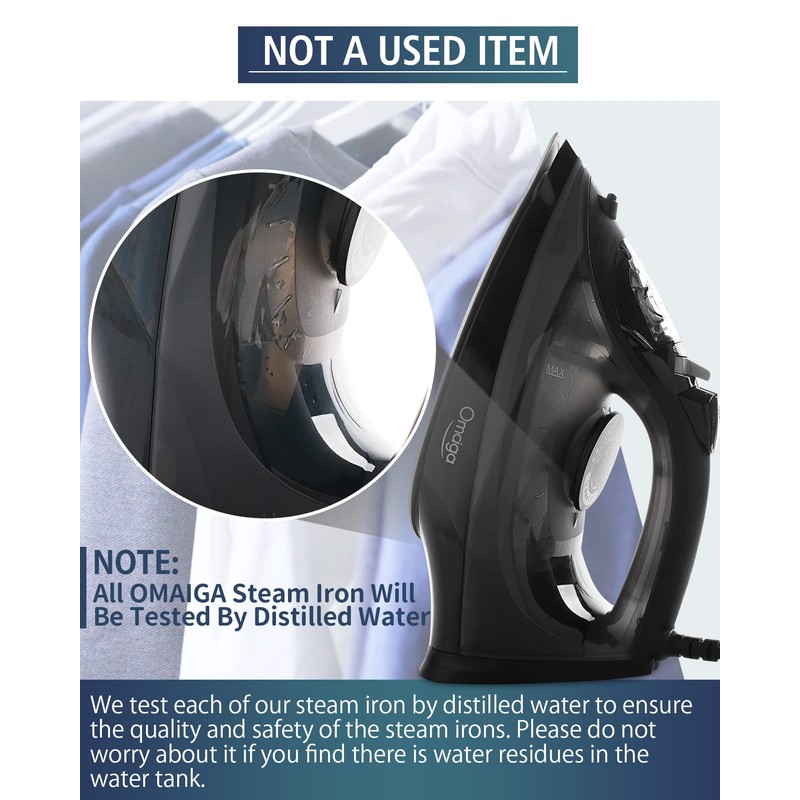 - 【NOT A USED IRON】Every iron for clothes needs to pass a functional TEST before going to the market, to prevent product quality problems from causing trouble to customers. So it is NORMAL when you see some WATER left in its tank. If you have any questions about this iron, please feel free to contact us, a one-year warranty is guaranteed.