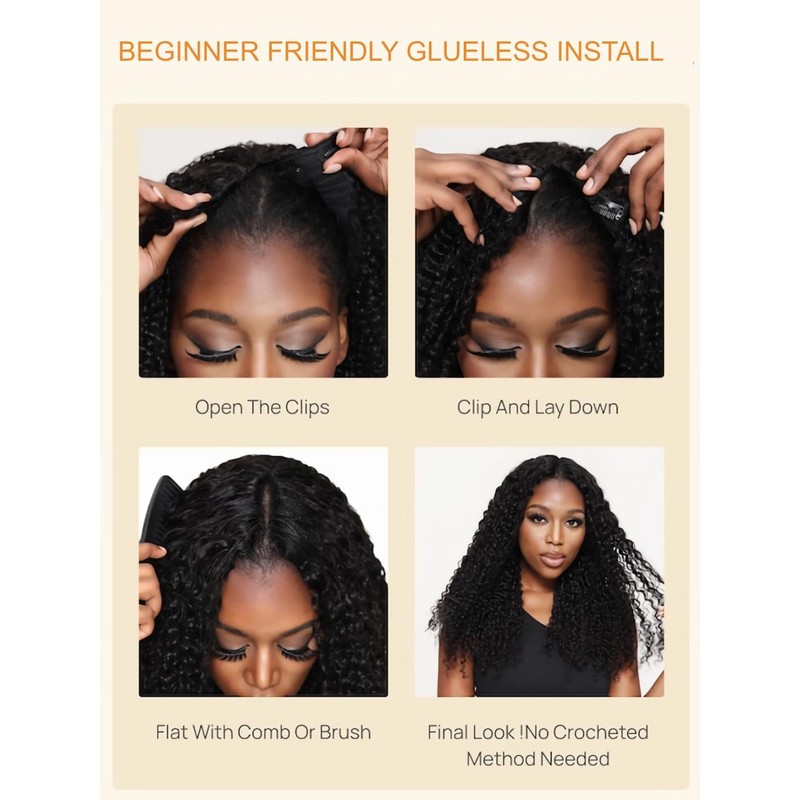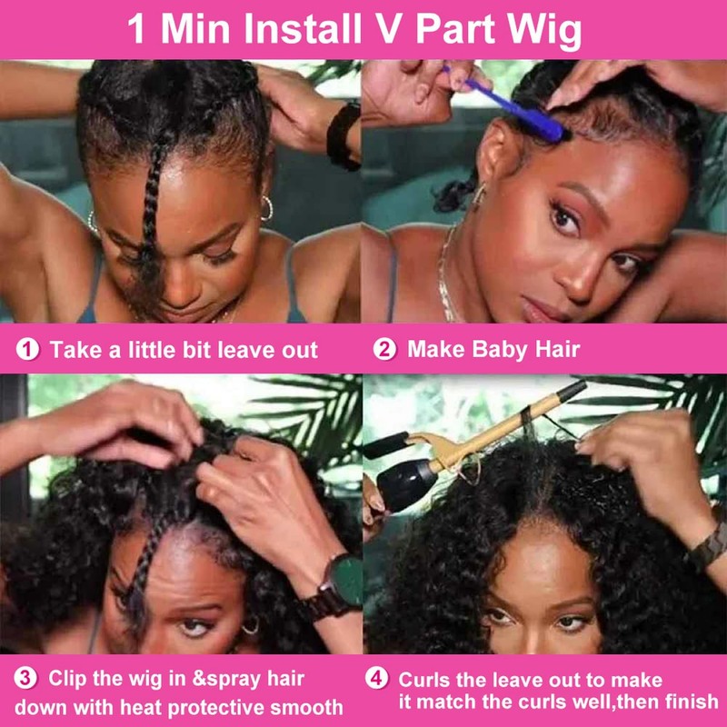 - 3.New Human Hair V Part Wig, Upgrade from U Part Human Hair Wig,No Lace, No Gel, Minimal or No Leave Out and No Sewing.Easy To Install and Take Off, Saving Your Time & Protect Your Edge. Friendly to Beginner.