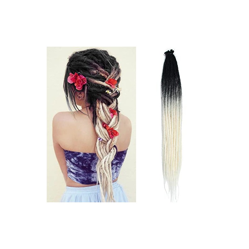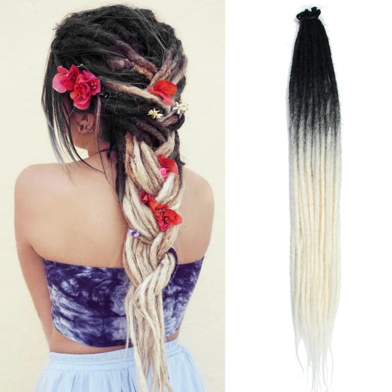 Ombre Dreadlocks Extensions Single Ended 15 Strands/Pack Black to White Soft Synthetic Dreads Reggae Crochet Braided Dread Extensions 24 Inch