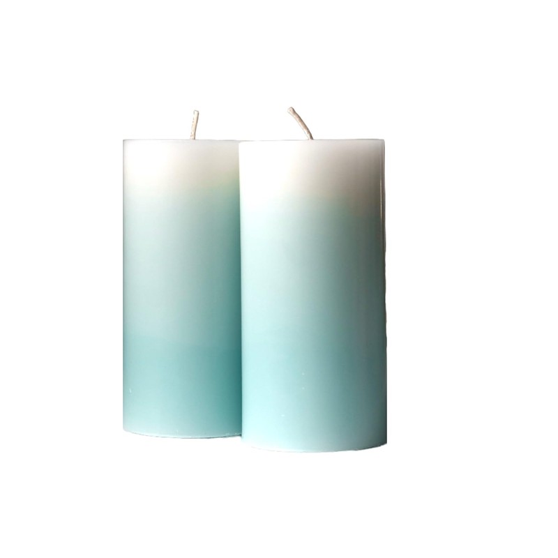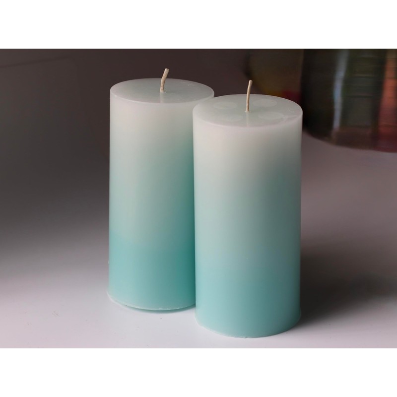 Ombre Gradation Pillar Candles by Modern Candle Design Hand Poured in The USA Set of 2 Unscented (Turquoise, 3 x 6)
