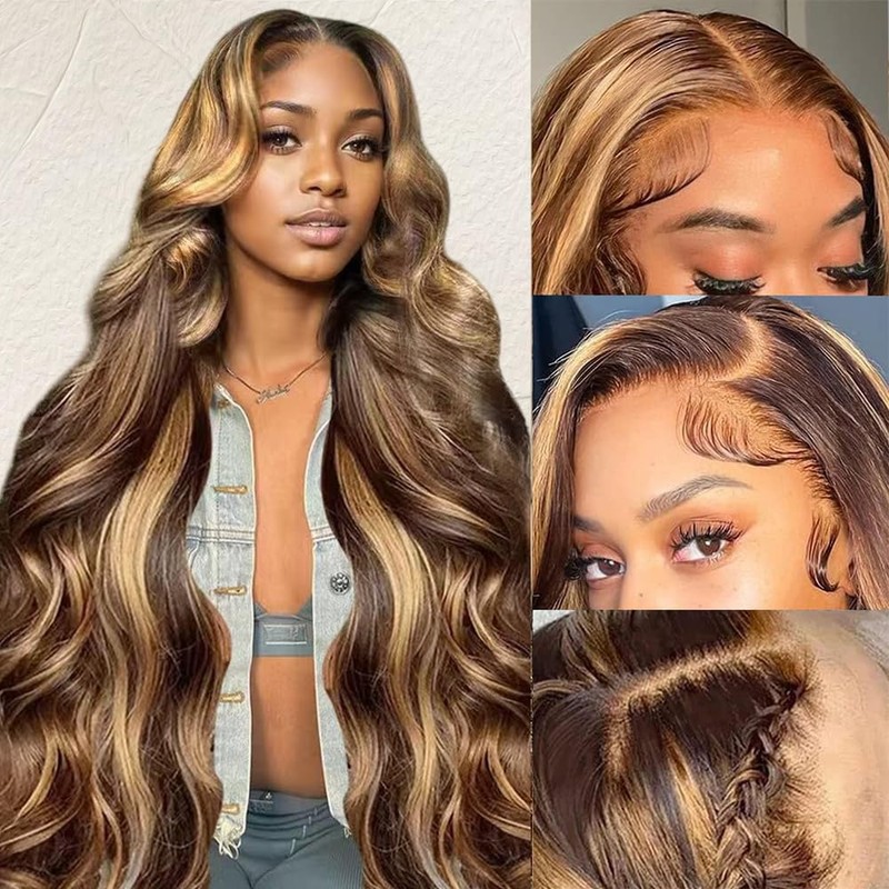 - Honey Blonde Human Hair Wig, 13x6 Advantage:13*6 Tips, #4/27 Honey Blonde HD Lace Front Wig with Natural Hairline Baby Hair Bleached Knots, Our Ombre Human Hair Wigs use plant extracts to color human hair, Ombre, natural and juicy in, comfortable, real The length is comfortable on the skin.