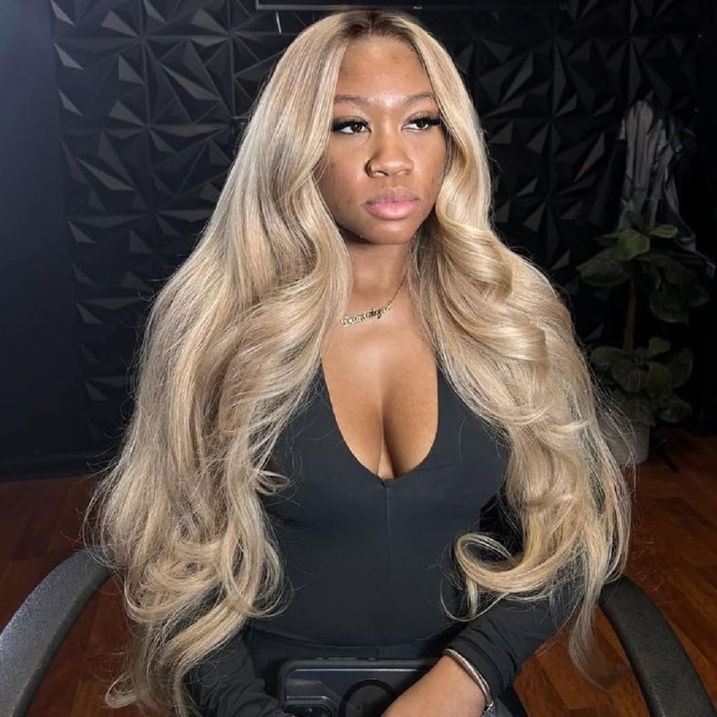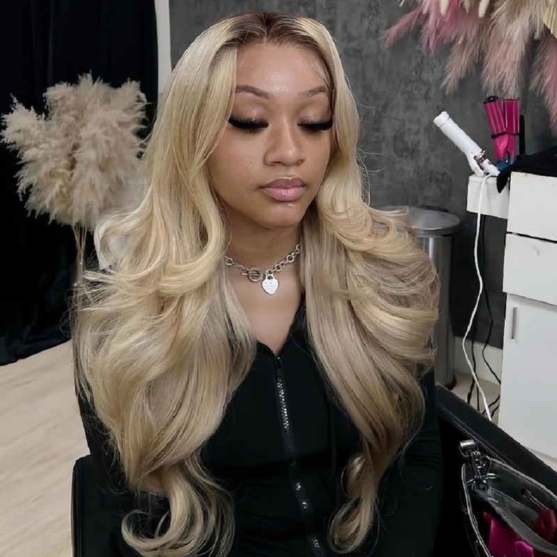- 13x4 Brown Roots Ash Blonde Wig:22.5 Inch Medium Cap with 4 Combs and Adjustable Straps, Easy to Install, Skin-Friendly.The breathable cap keeps your scalp cool, Even for long - term wear, the scalp can “breathe” freely.