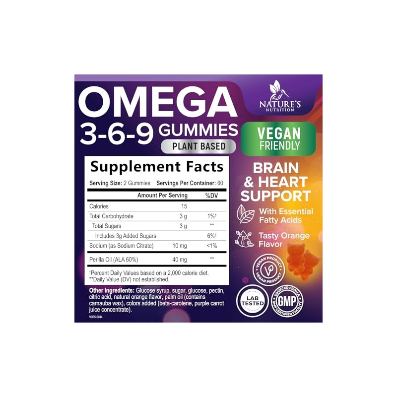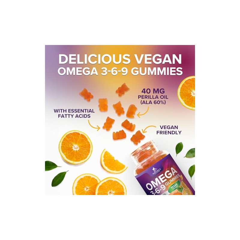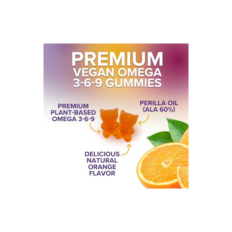 Omega 3 6 9 Gomitas veganas suplemento de cido graso esencial - Aceite de perilla 369 gomitas - El mejor soporte cardaco a base de plantas, sin OMG -