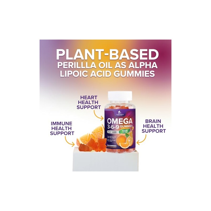 🌟 ⭐ Omega 3 6 9 Gomitas veganas suplemento de ácido graso esencial - Aceite de perilla 369 gomitas - El mejor soporte cardíaco a base de plantas, sin OMG - 120 gomitas ⭐ 🌟