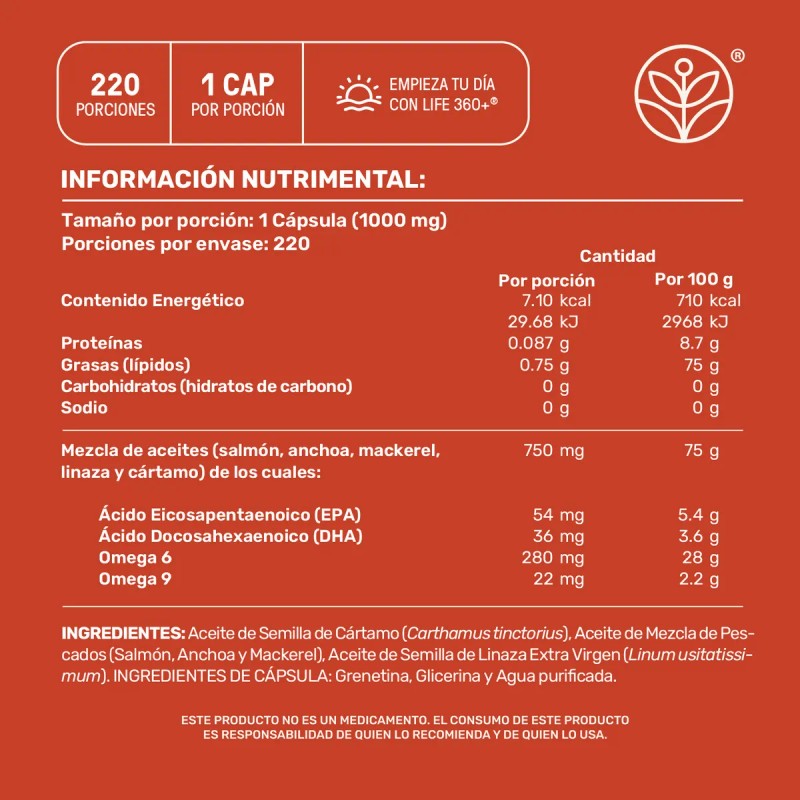 LIFE360+ - Omega 3 6 y 9 Life360+ 220 Cápsulas 1000 mg de Omega Por Porción Aceite de Salmón Omega 369 220 Porciones Por Envase Omega Platinum. 💯 Autenticidad y máxima durabilidad comprobadas. Tecnología avanzada y rendimiento superior. 📦 Entrega rápida y segura. Ideal para quienes buscan lo mejor en calidad y estilo. Producto auténtico con satisfacción total asegurada. ¡No te quedes sin el tuyo y aprovecha esta oportunidad única!